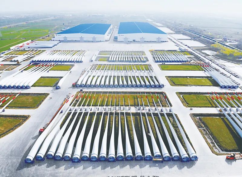 中國(guó)建材集團(tuán)風(fēng)電葉片年總產(chǎn)能19660兆瓦,產(chǎn)品覆蓋1.0兆瓦到15.0兆瓦系列,擁有100余個(gè)型號(hào),開(kāi)發(fā)出112米海上風(fēng)電葉片。圖為中國(guó)建材集團(tuán)風(fēng)電葉片阜寧生產(chǎn)基地。